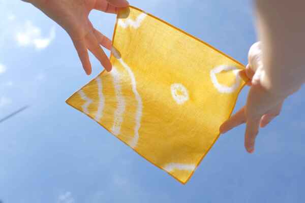 輪ゴムを使って模様をつけて、世界でたった一つのハンカチを作りましょう。