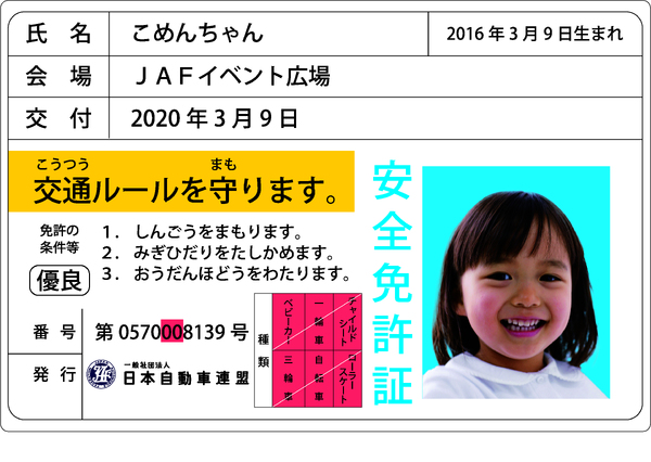 交通安全クイズに答えて、運転免許証そっくりのカードを無料で発行します。★なまえと写真入り★