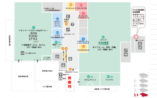 1FのCAINZさん側の入口前にて、整理券配布列にお並びください!