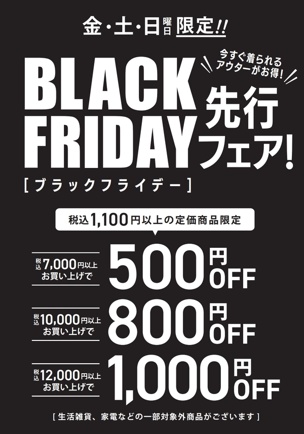 ikka店頭ではただいま「ブラックフライデー先行フェア」を開催しております*°